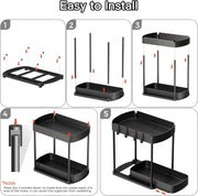 Crafted with durable plastic shelving supported by metal tubes, these organizers stay solid under everyday weight without deforming. Their compact footprint fits easily in cabinets, under sinks, or inside pantries, while the tool-free installation means you can set them up in seconds. Great for storing cleaning supplies, toiletries, canned goods, spices, detergents, or small tools, this organizer set helps bring order to cluttered spaces and keeps items easy to see and reach.