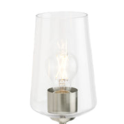 Perfect for powder rooms requiring sophisticated lighting in limited space, hall bathrooms with single vanities 30-36" wide, guest bath renovations where the fixture needs presence without overwhelming, smaller primary baths embracing minimalist aesthetics, or transitional spaces where neither traditional nor stark modern feels appropriate. Install glass-up for ambient glow or glass-down for focused task lighting. Available in four finishes. Discontinued product—available while supplies last.
